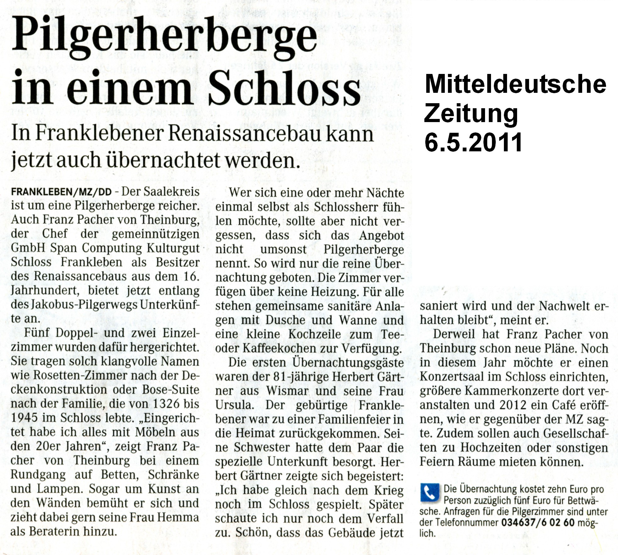 Artikel über die Pilgerherberge in der Mitteldeutschen Zeitung: